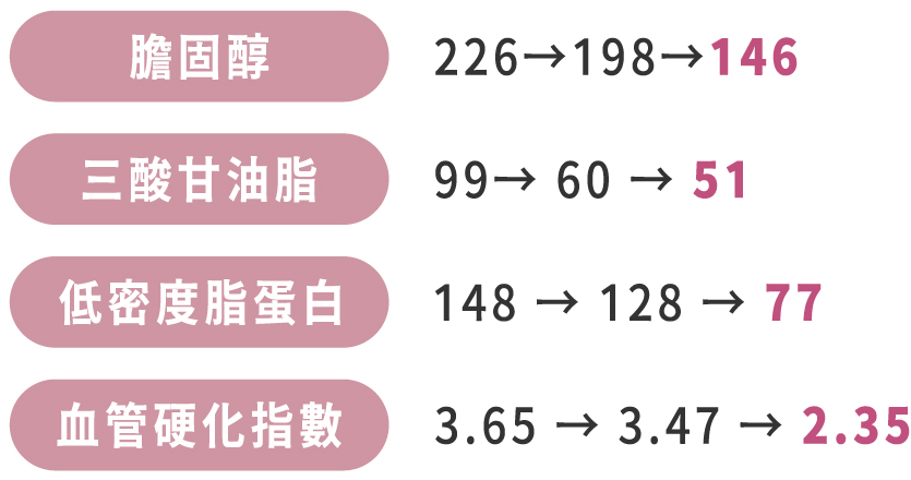 開始服用專利糖心腎FFL三護配方後,我的生活逐漸發生了變化。一個月後,我的三酸甘油脂從99降到了60,這讓我感到非常驚喜和感激。持續服用兩個月後,指數進一步降到51,這讓我更有信心保持健